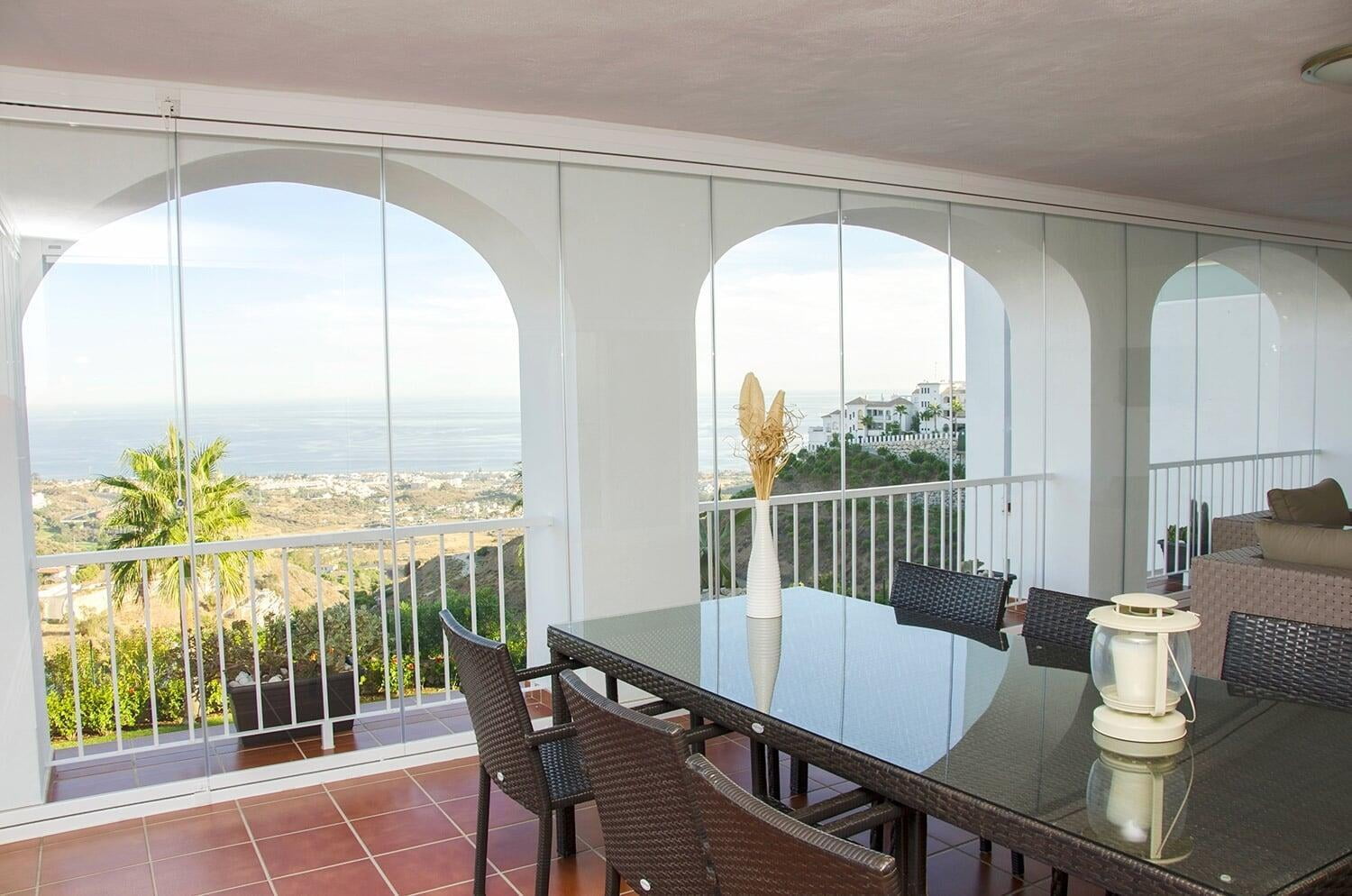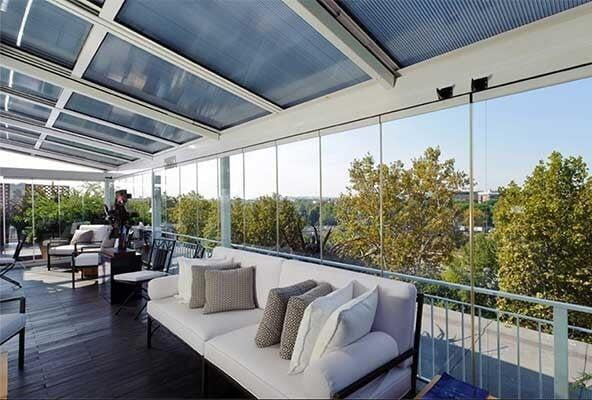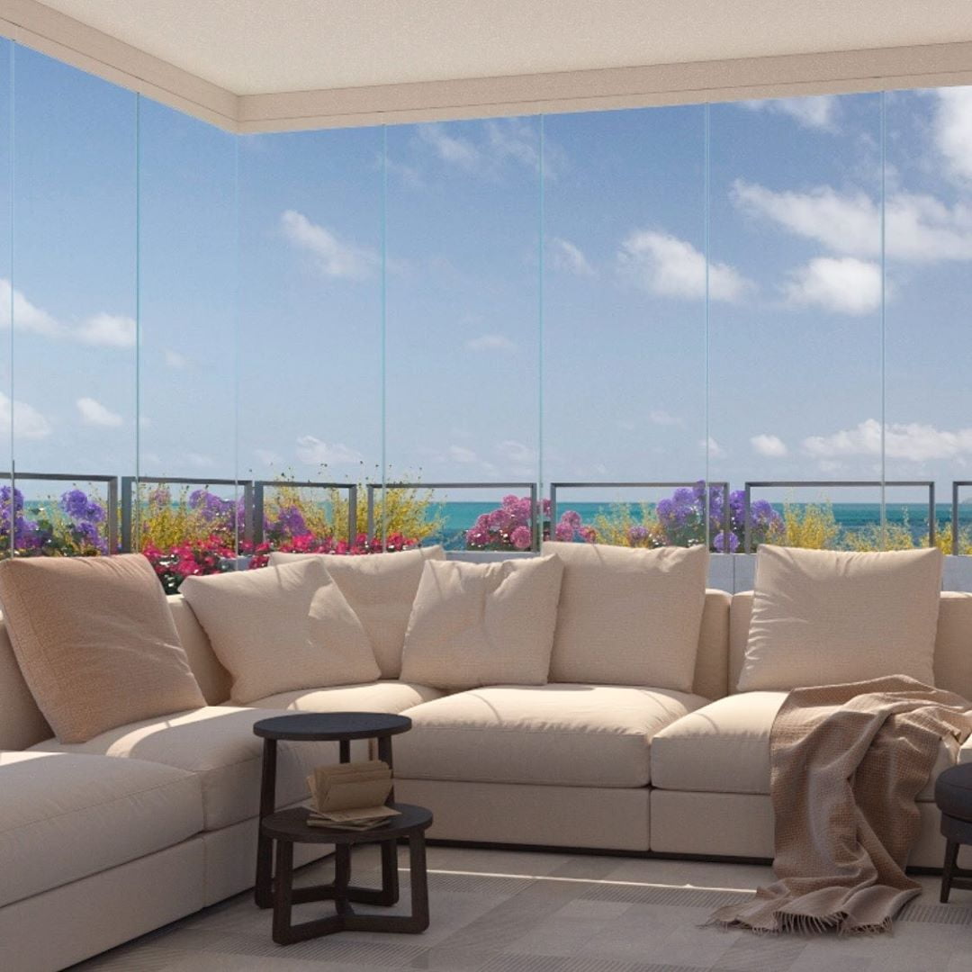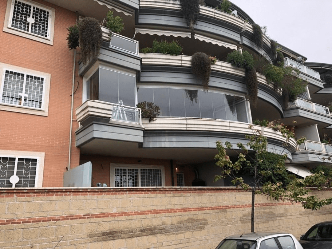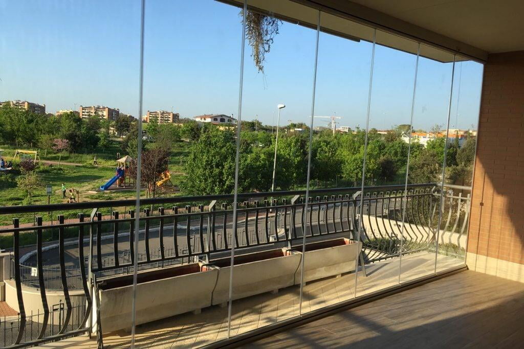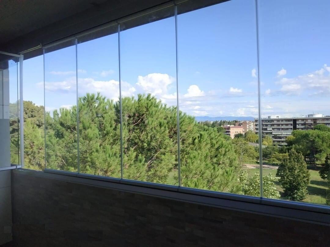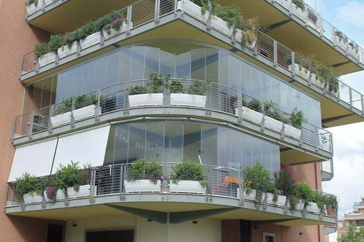 TaaTa oltre ad essere realizzabile su profili rettilinei segue agevolmente ogni curva o angolo presente sul balcone mantenendo sempre inalterate le caratteristiche di trasparenza totale senza profili verticali.